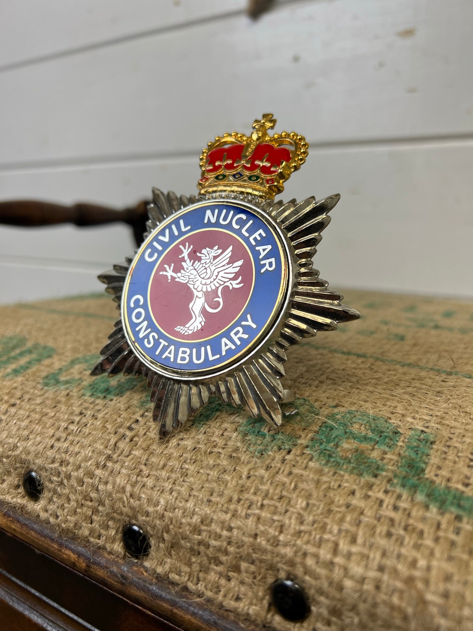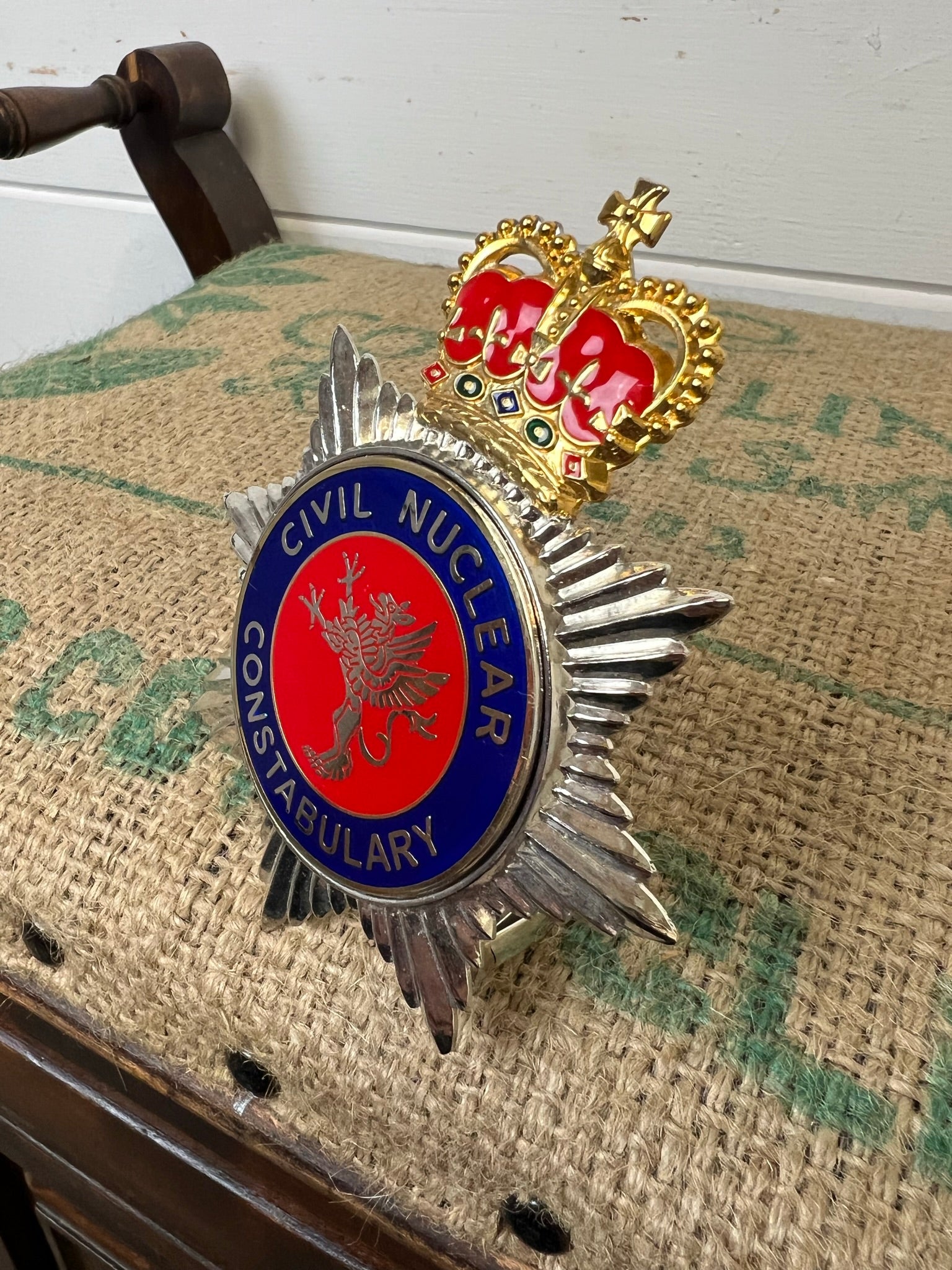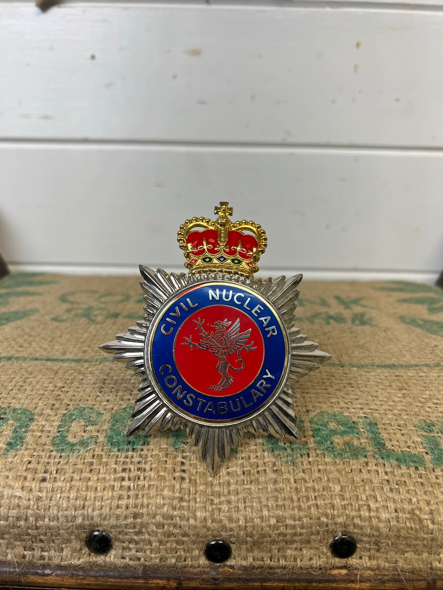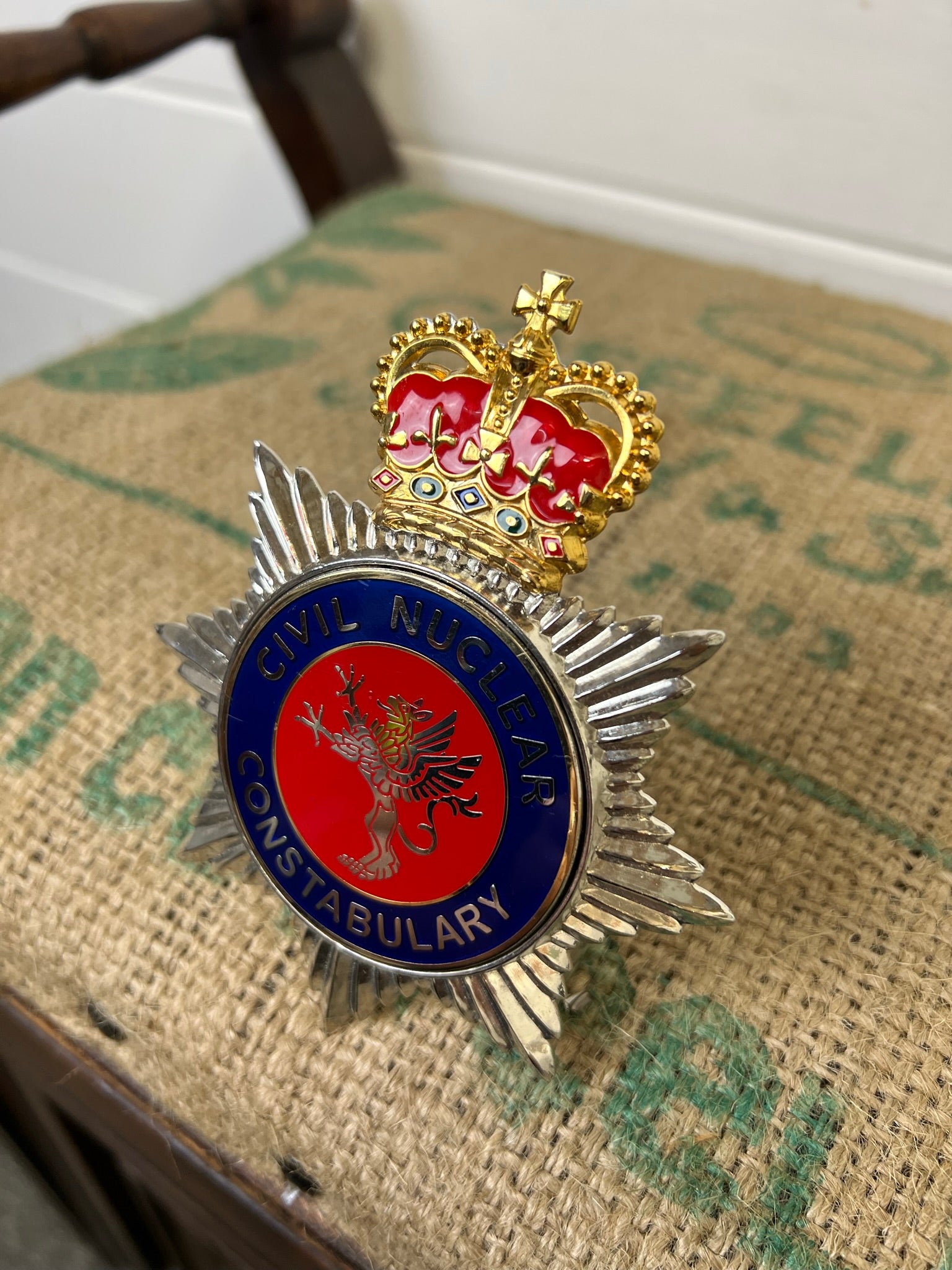Civil Nuclear Constabulary Rare Obsolete Enamel Bobby Helmet Badge Plate Queens Crown