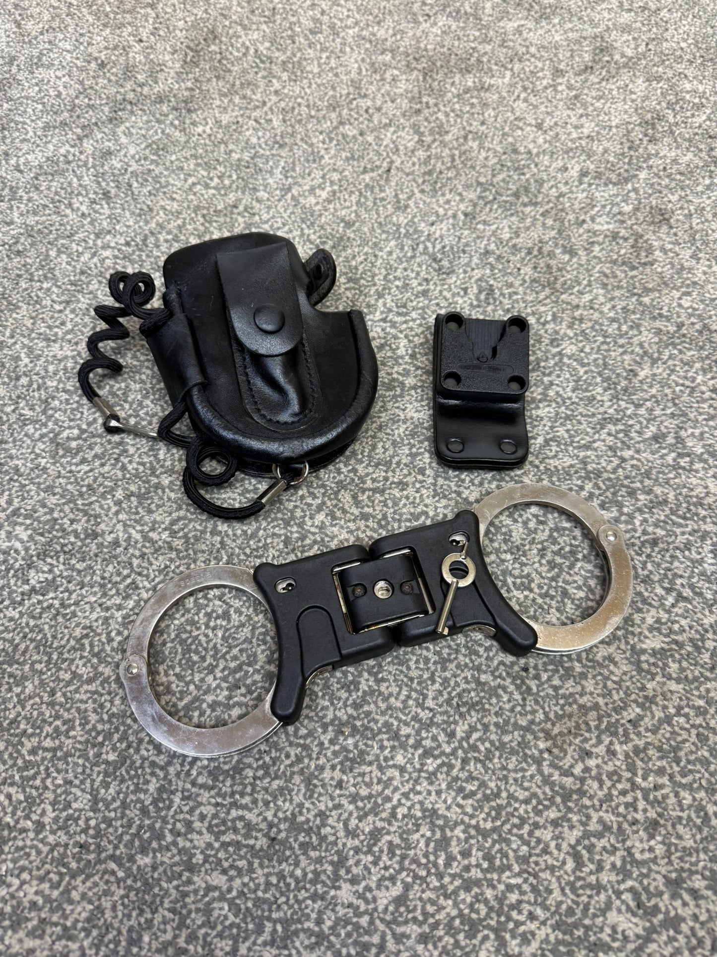 Ex Police Folding Hiatt Handcuffs Hinged Cuffs PSNI Pouch & Key Security Collectible