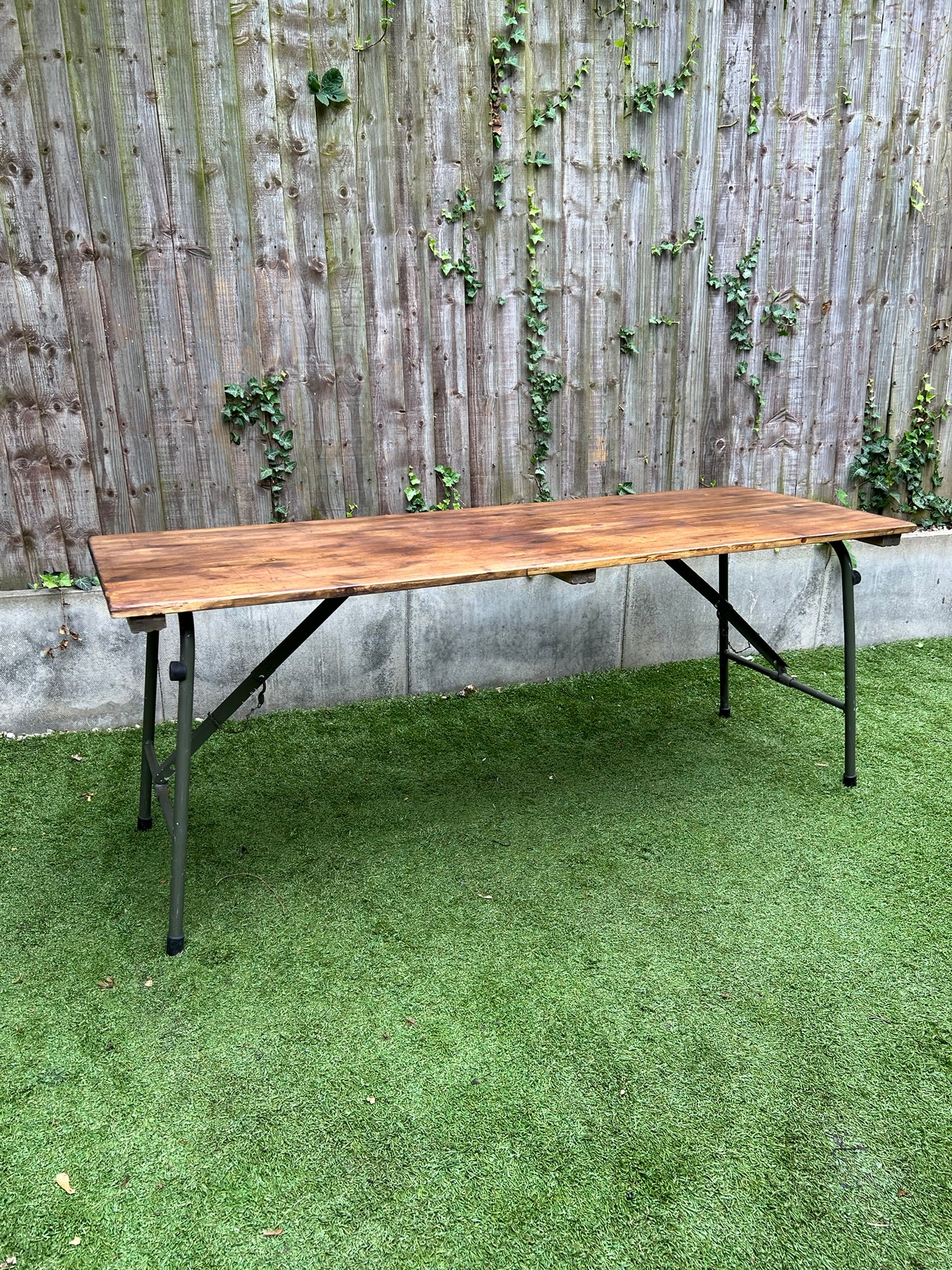 Rustic Vintage Wooden Folding Trestle Table Industrial Farmhouse Dining Garden Reclaimed Army