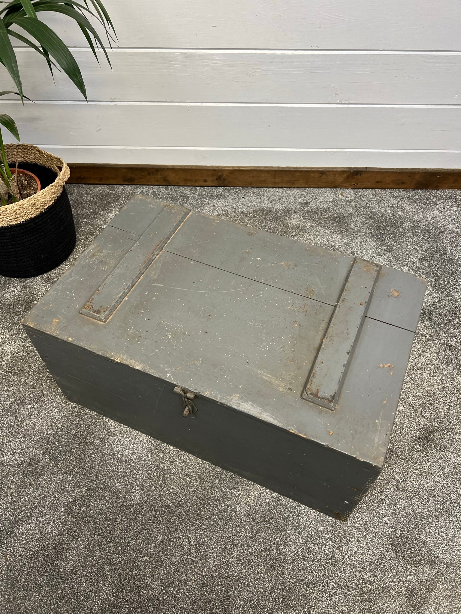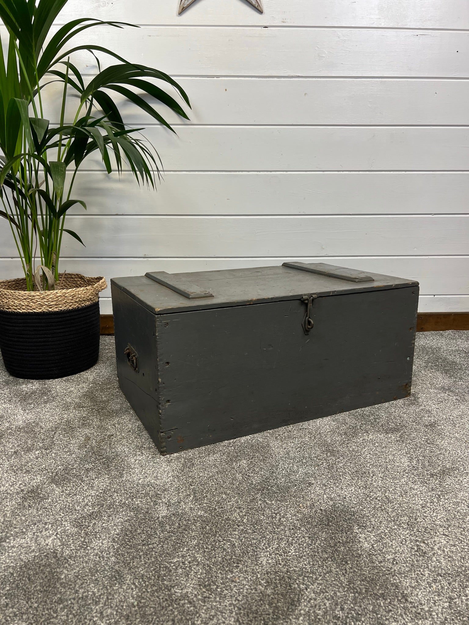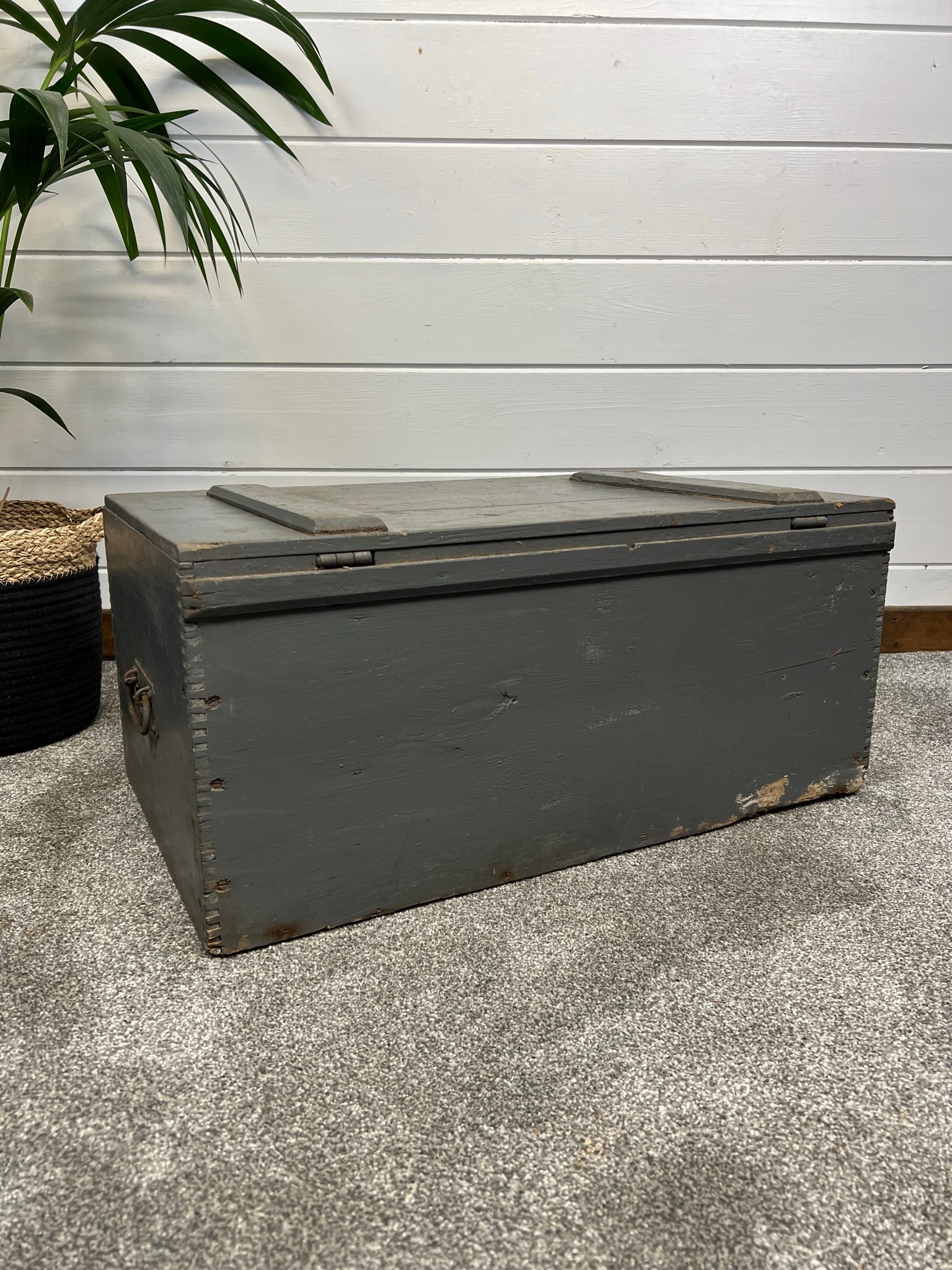 Vintage Grey Wooden Storage Box Trunk Tool Chest Toolbox Side Table