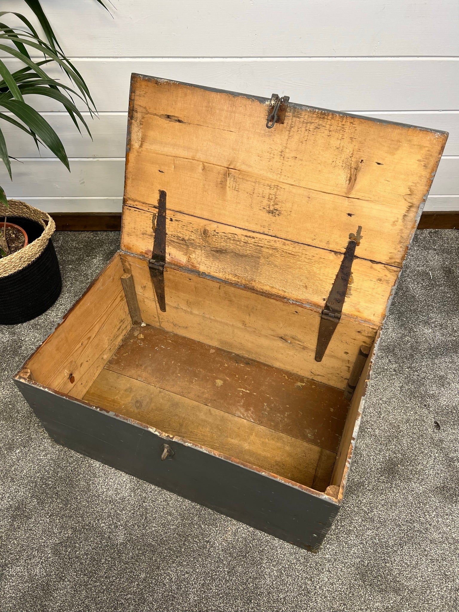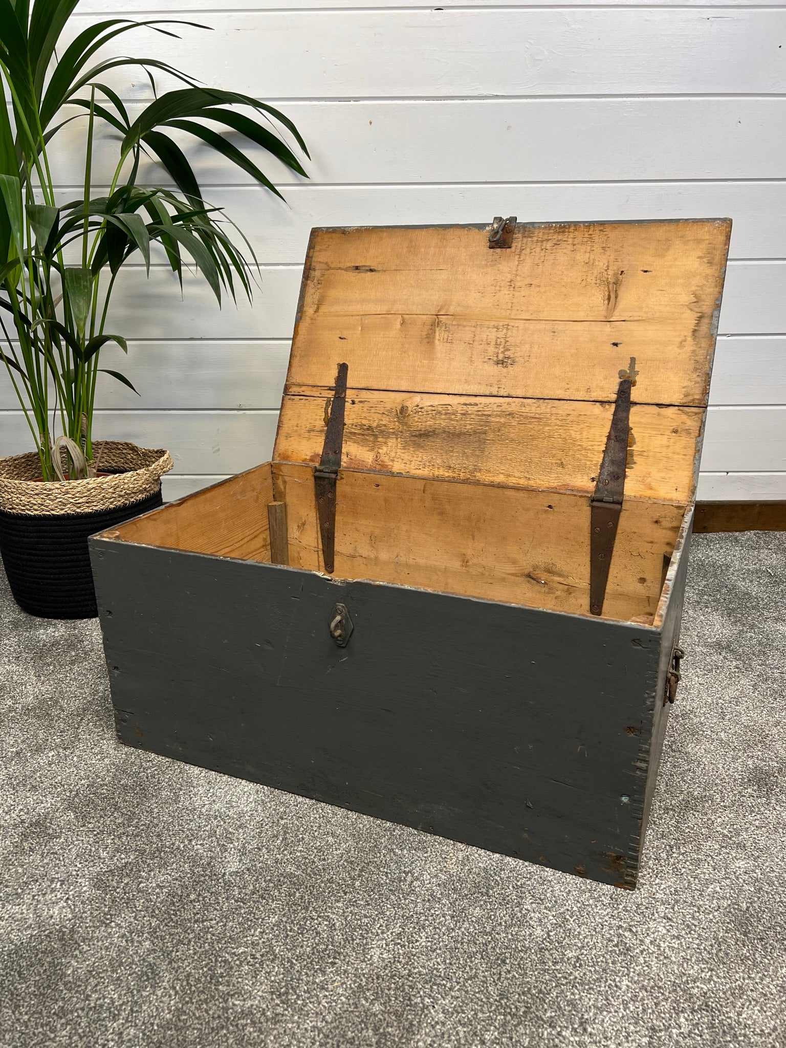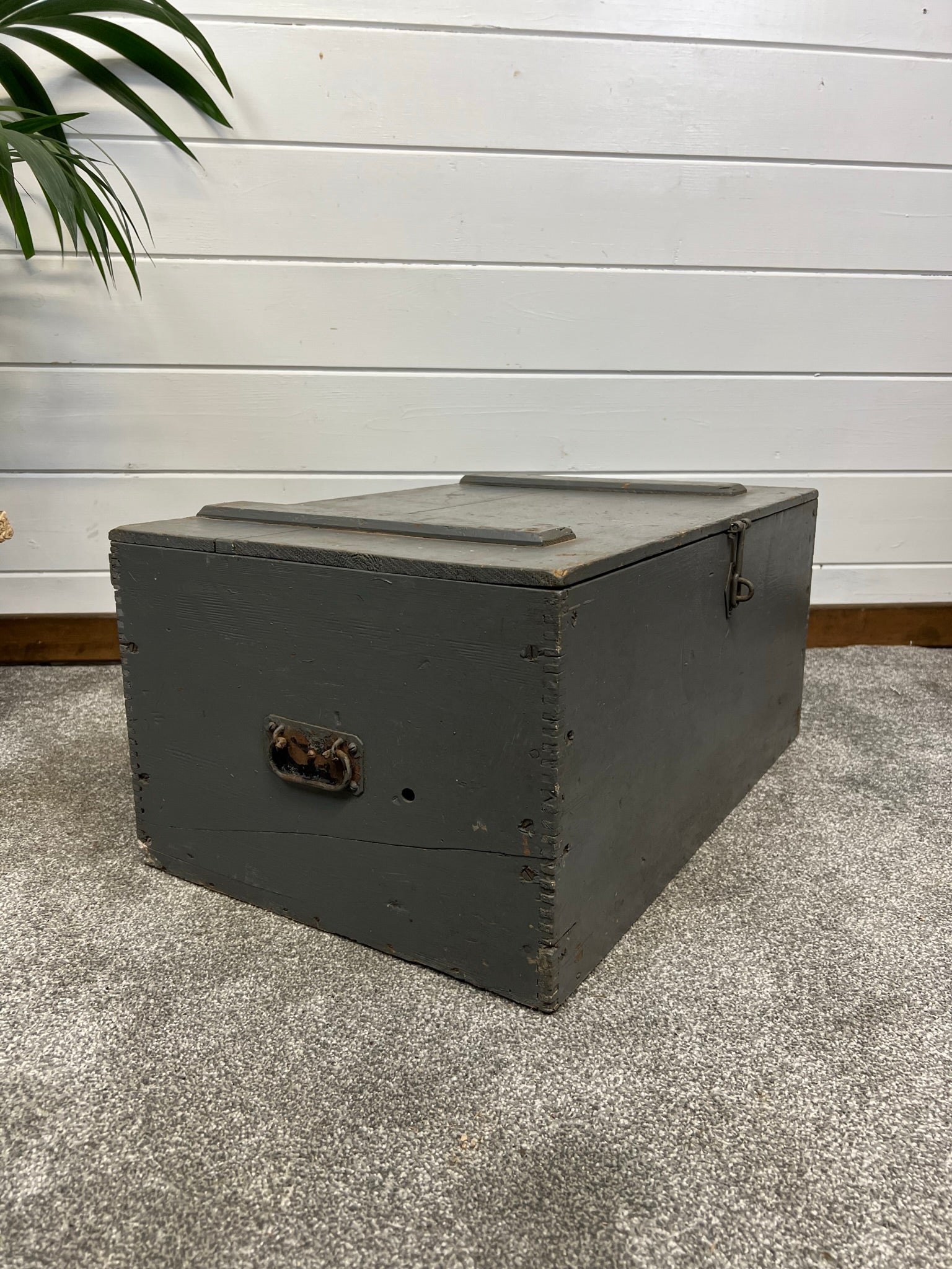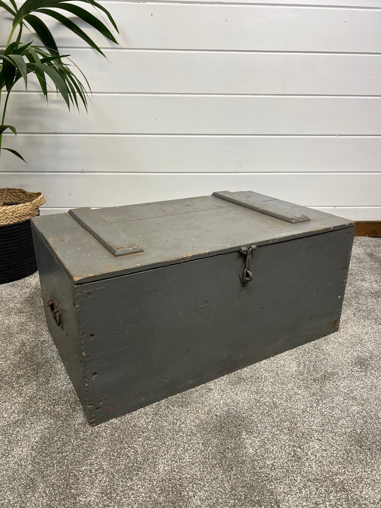 Vintage Grey Wooden Storage Box Trunk Tool Chest Toolbox Side Table