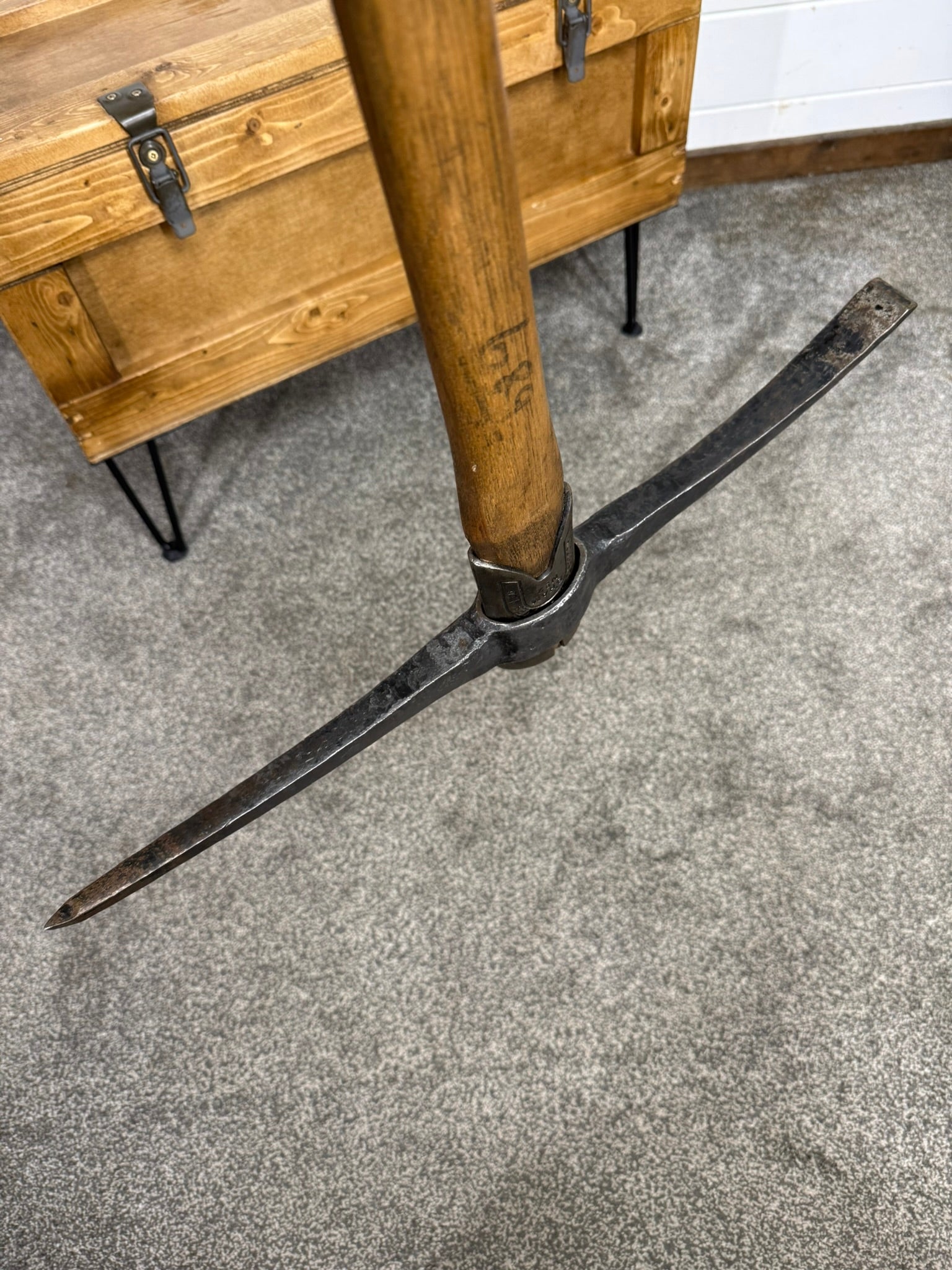 The head has had a rub down of old surface rust and the handle has been lightly sanded & waxed. You will still see the odd age-related wear & marks, all adding to it's character.