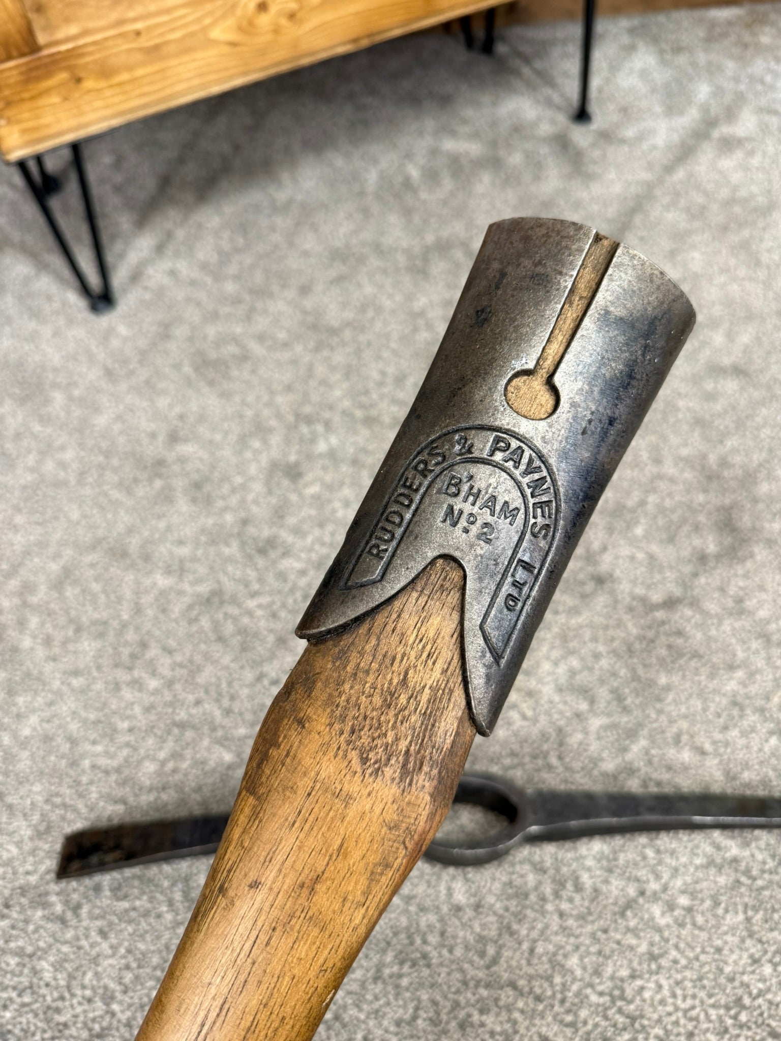 The metal collar on the handle has makers stamp "Rudders & Paynes Ltd" "B'Ham No2"